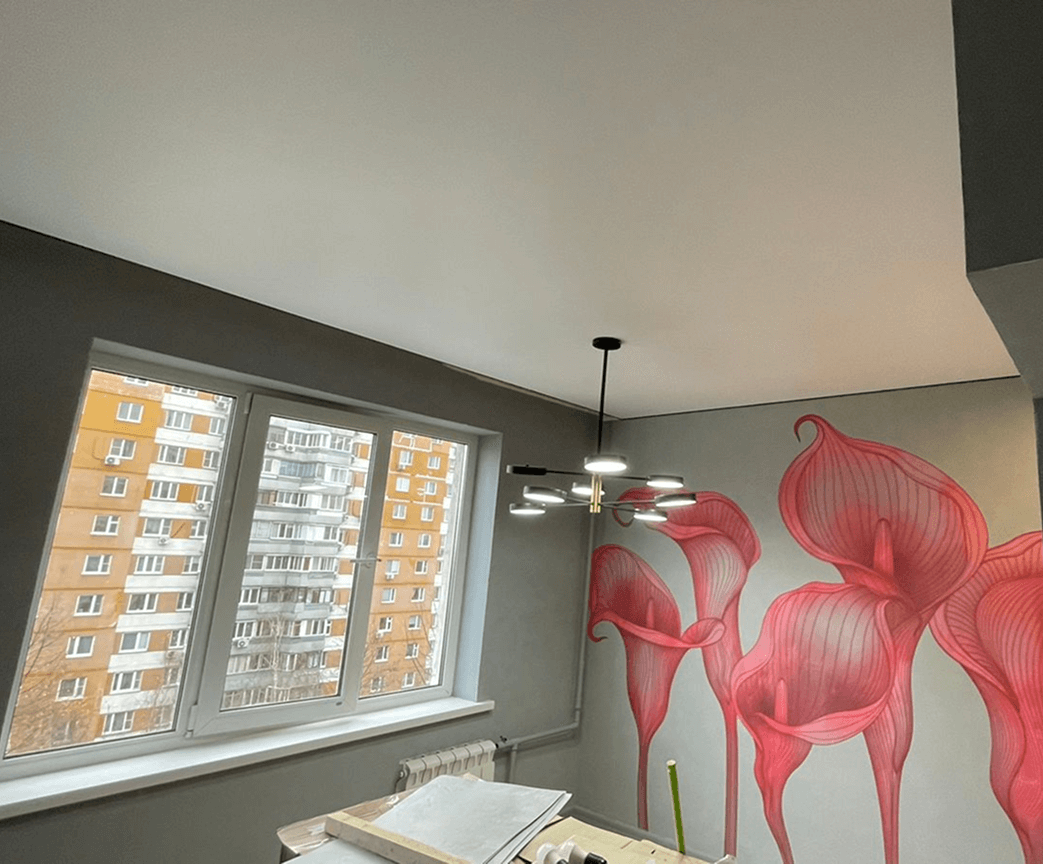 растворителей. Благодаря надежности несущей конструкции и прочности полотна мыть потолок можно даже